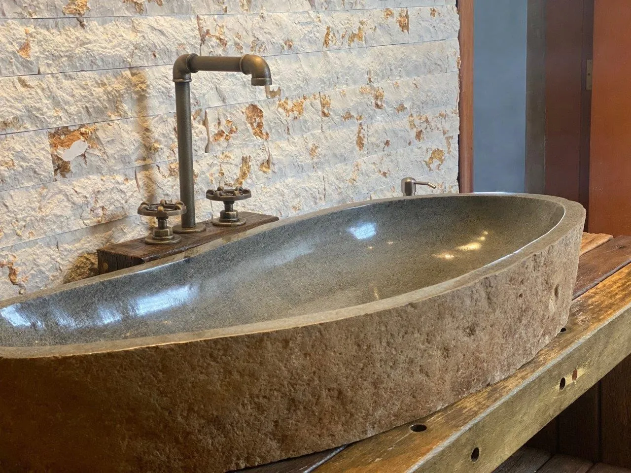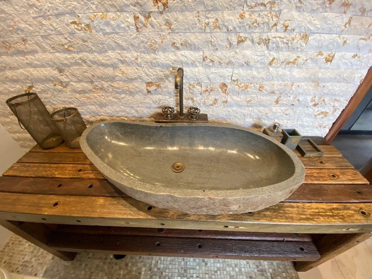 Por fim, não se esqueça da cuba: se couber no orçamento, o efeito rústico fica ainda melhor em um modelo esculpido em pedra ou moldado com porcelanatos, saindo do lugar comum das peças já prontas na cor branca.