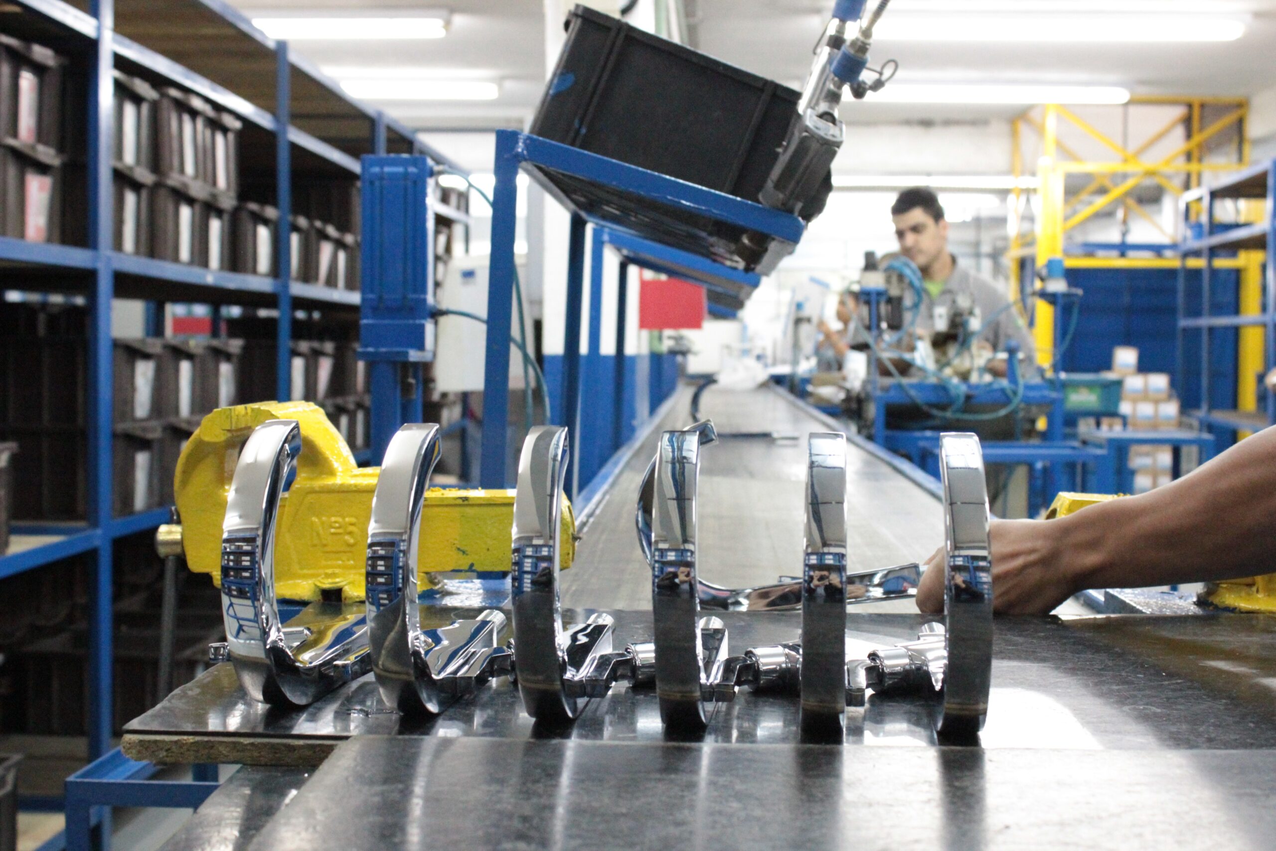 O processo seguinte é o tratamento de superfície. O setor responsável por esse trabalho é o de Galvanoplastia. Esse procedimento é necessário para garantir a resistência à corrosão e criar um excelente aspecto visual.
