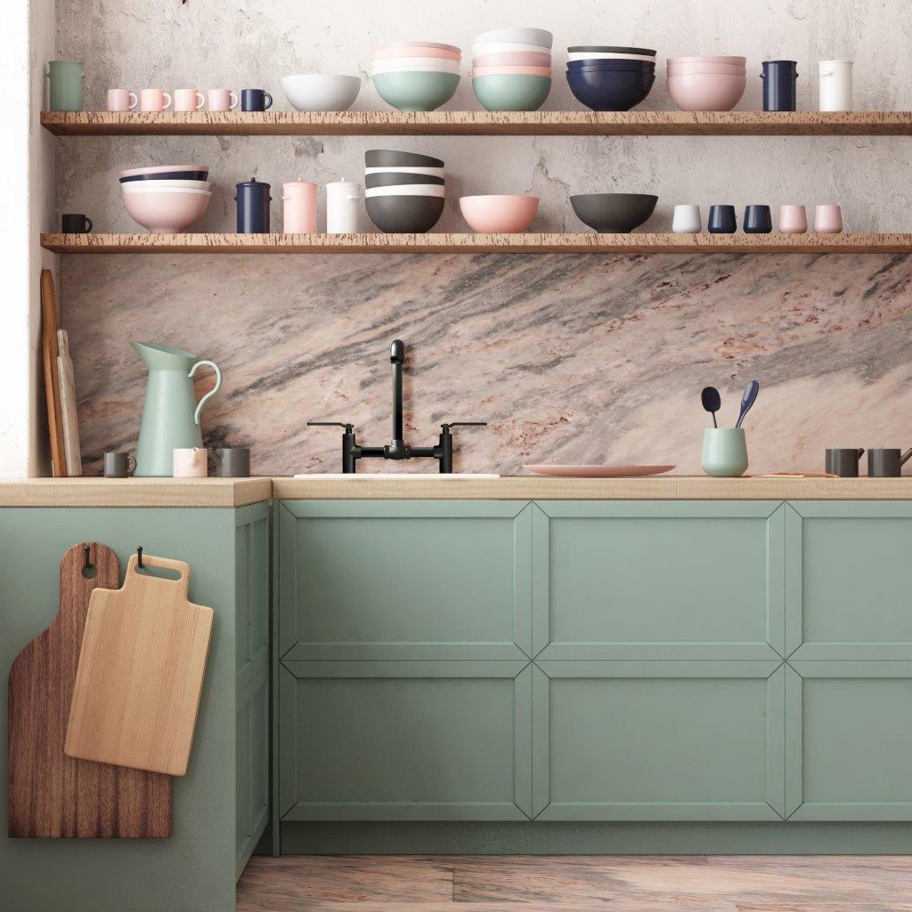 Paleta de cores e materiais para uma cozinha shaker