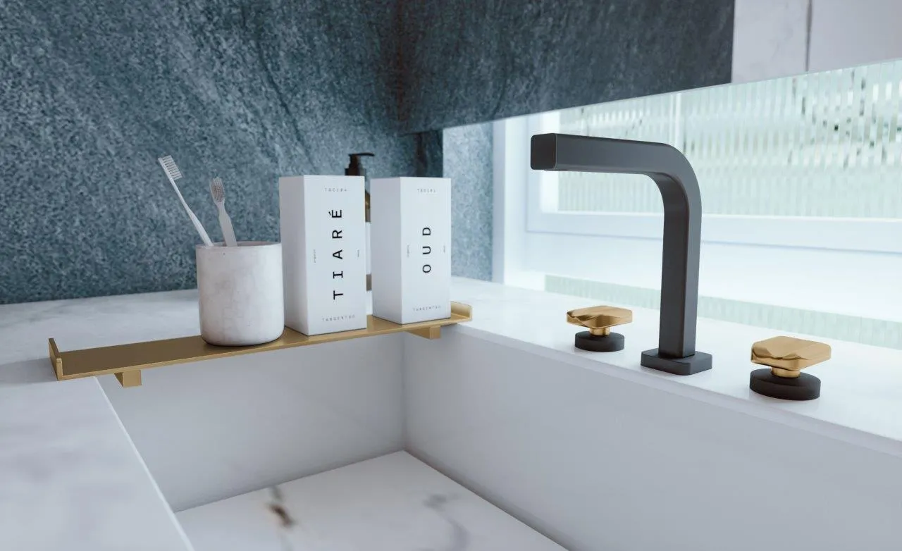Outra novidade que se encaixa nesse estilo é a Linha Barbara Dundes 800, que oferece diversas possibilidades de combinações entre bicas, acionamentos e acabamentos de registro, além de bandejas para combinar com os metais na bancada.
